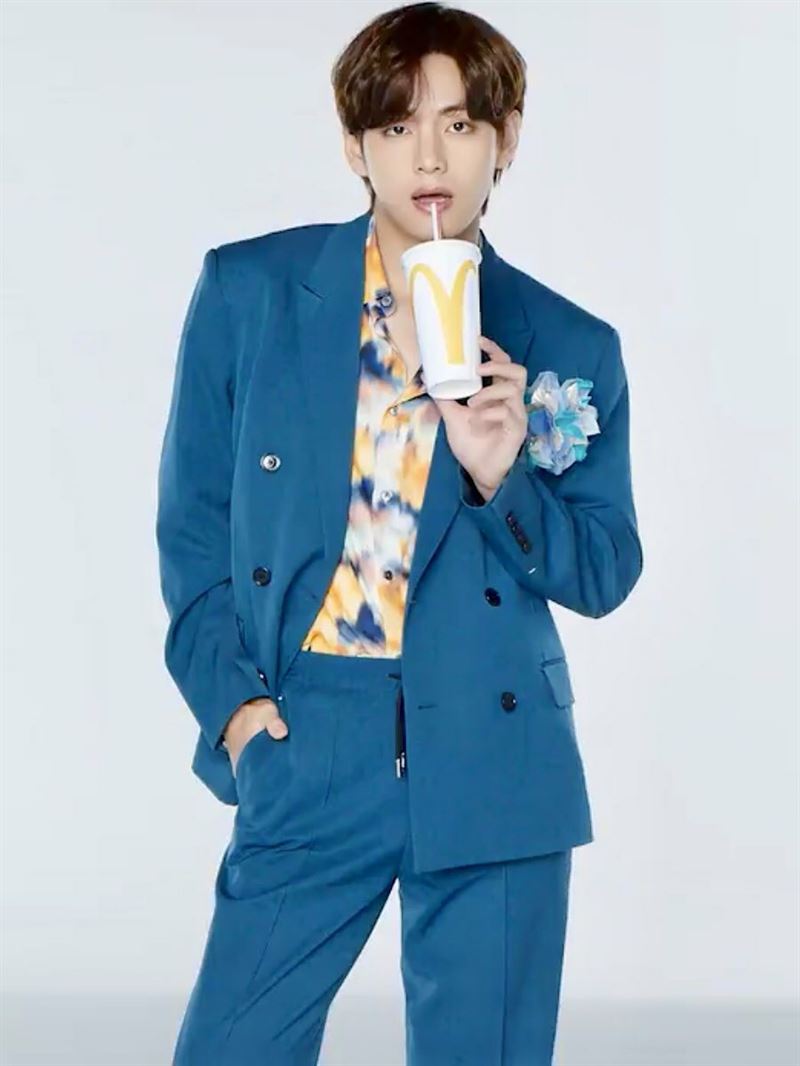 본 광고 영상에서도 신선하고 특별한 개성 넘치는 매력과 물 흐르듯 자연스러운 연기력, 제품을 돋보이게 하는 타고난 감각 등이 어우러진 뷔의 사랑스러운 모습이 이어지며 화제의 중심에 섰다. BTS Meal의 소개를 마치고 멤버들이 모여 마무리 멘트를 하는 순간, 뷔는 천연덕스럽게 손을 뻗어 너겟을 집어 먹는 깜찍한 연출을 소화하며 모두를 놀라게 했다.