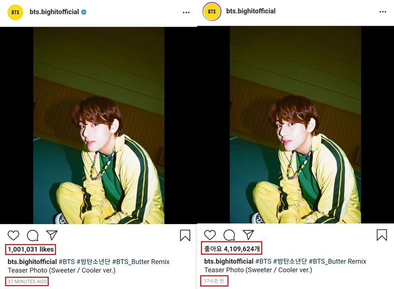 뷔의 티저 포토는 인스타그램에서 공개된 지 37분 만에 100만, 7시간 만에 300만, 17시간 만에 400만 ‘좋아요’를 돌파해 공개된 티저 포토 중 가장 빠른 기록을 달성했다. 뿐만 아니라 페이스북에서도 뷔의 티저 포토는 가장 많은 ‘좋아요’를 받아 독보적인 ‘소셜 킹’(SNS King)의 위엄을 과시하고 있다.