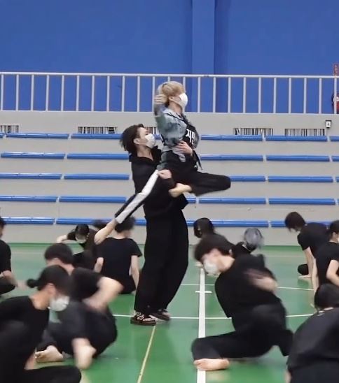 이어 지민은 체육관으로 보이는 연습실에 수십 명의 댄서들과 함께 안무를 맞춰보며 주위를 압도하는 카리스마로 마치 실제 공연을 방불케하는 완벽한 실력을 보였다.