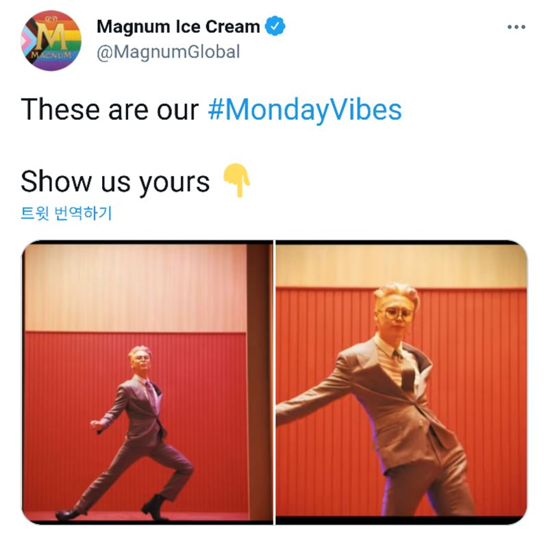 방탄소년단 지민을 향한 벨기에 유명 아이스크림 '매그넘'(Magnum)의 끊임없는 애정 공세가 화제다.