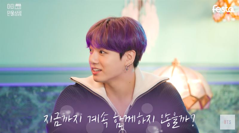 지난 12일 방탄소년단은 공식 유튜브 채널을 통해 페스타(FESTA)의 콘텐츠 중 하나인 아미 만물상점 영상을 공개했다. 페스타는 매년 데뷔일에 맞춰 팬들과 함께 즐기는 축제로, 멤버들이 직접 참여한 콘텐츠가 차례로 올라온다. 이번 아미 만물상점은 ‘우리, WE’를 주제로, 방탄소년단은 세 권의 키워드 책을 보고 떠오르는 방탄과 아미의 추억에 대해 이야기를 나눴다.