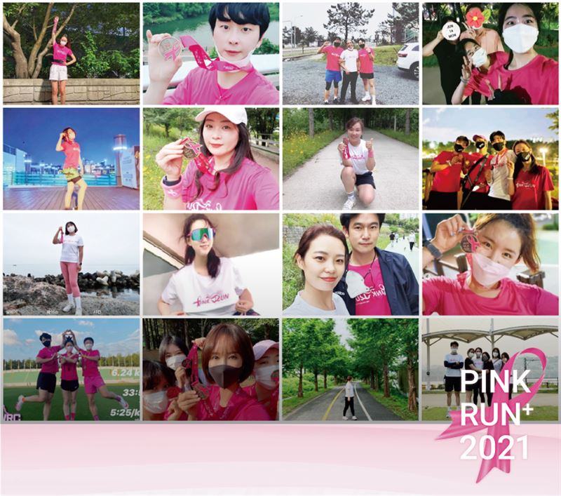 핑크리본 캠페인의 대표 프로그램 ‘핑크런’은 유방 건강 인식 개선을 위해 올해로 21년째 진행 중이다. 2020년부터는 코로나19 상황 속 참가자의 안전을 위해 ‘핑크런 플러스’로 비대면 레이스를 펼치고 있다.