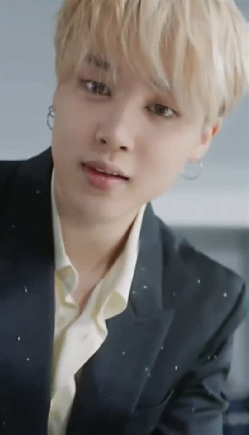 지민은 오전 8시를 알리는 자막과 함께 햇살을 받아 더욱 빛나는 눈부신 금발에 파스텔 톤 옐로우 셔츠와 흰색의 도트 무늬가 포인트인 블랙 수트차림으로 양손을 주머니에 꽂은채 은은한 미소를 띤 스윗한 모습으로 아침 햇살이 비추는 주방에 등장한다.