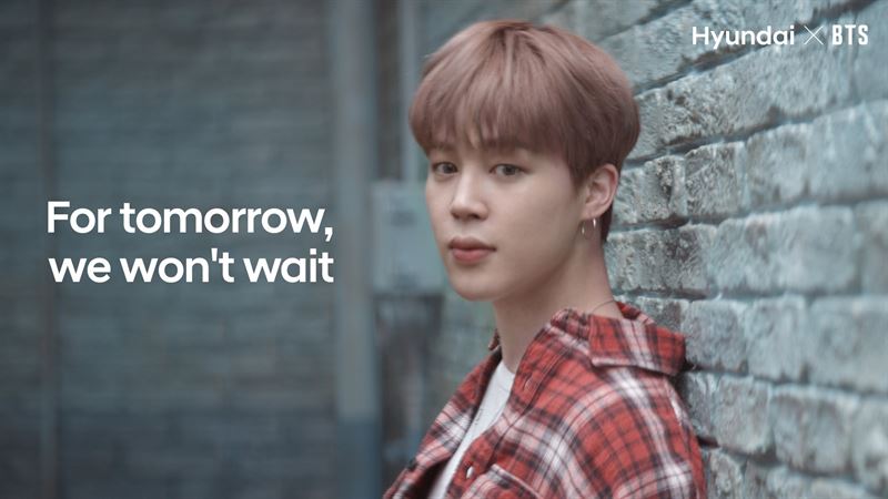 지난달 29일 현대자동차는 글로벌 브랜드 홍보대사 방탄소년단이 ‘스팟'(Spot), ‘아틀라스'(Atlas)라는 로봇들과 함께 아이오닉 브랜드 음원에 맞춰 춤추는 영상인 'Welcome to the Family with BTS'를 공개했다. 영상 속 지민은 금발의 단정한 짧은 헤어스타일에 레드 타탄셔츠와 찢어진 블루진을 입어 청령한 소년미로 팬들의 눈길을 사로잡았다.