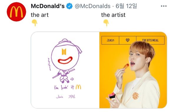 지민은 최근 맥도날드와의 협업을 통해 홍길동 손그림을 선보이며 한글과 패랭이, 전통 의상 등 한국 문화를 널리 알렸다. 이는 공식 티셔츠 판매까지 이어져 한국과 해외 팬들로부터 큰 주목을 받았다.