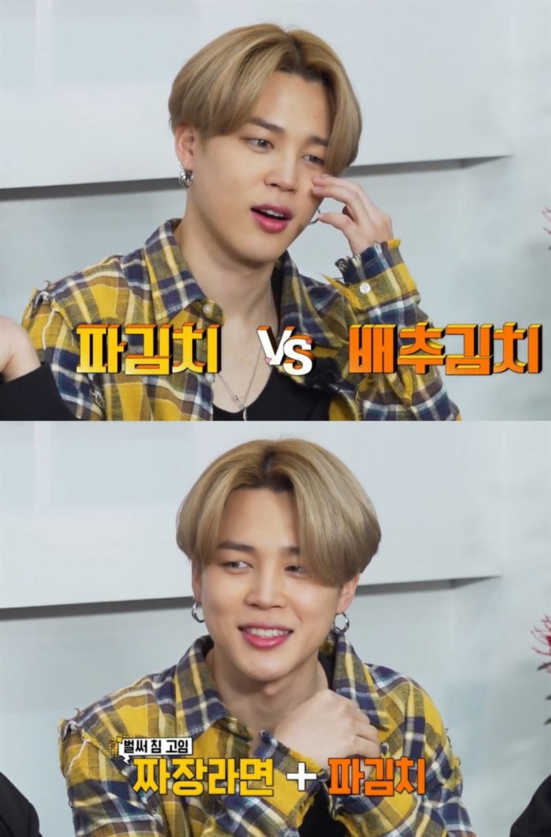 방탄소년단 자체 예능 '달려라 방탄'에서 지민은 멤버들과 함께 김치 만들기에 도전했다. 재료 손질부터 김치와 어울리는 음식 소개, 먹는 방법까지 다양한 정보를 제공하며 김치가 한국 전통 음식이라는 것을 세계의 아미들에게 각인시켰다.