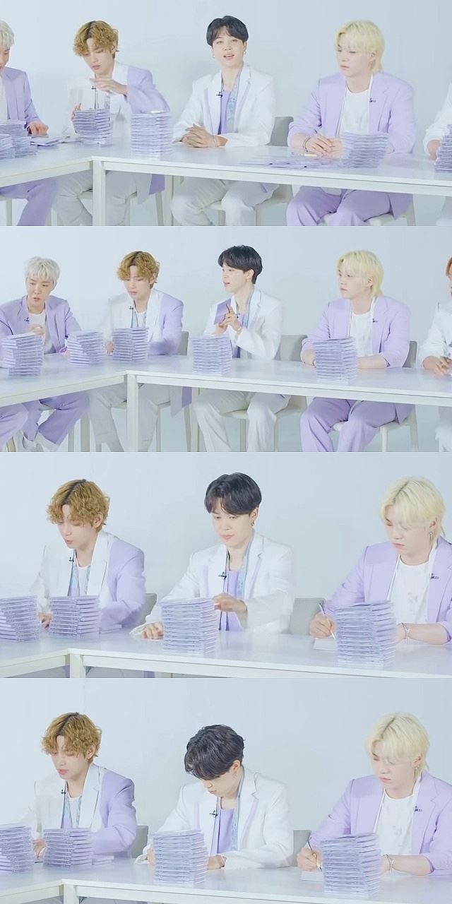 특히, 지민은 멤버들에게 CD 케이스에 사인 표지를 잘 넣을 수 있는 방법을 알려주기도 하고 사인 CD 정리도 도와주는 등 멤버들을 살뜰히 챙기는 다정하고 세심한 모습의 평소의 남다른 멤버 사랑을 보였다.