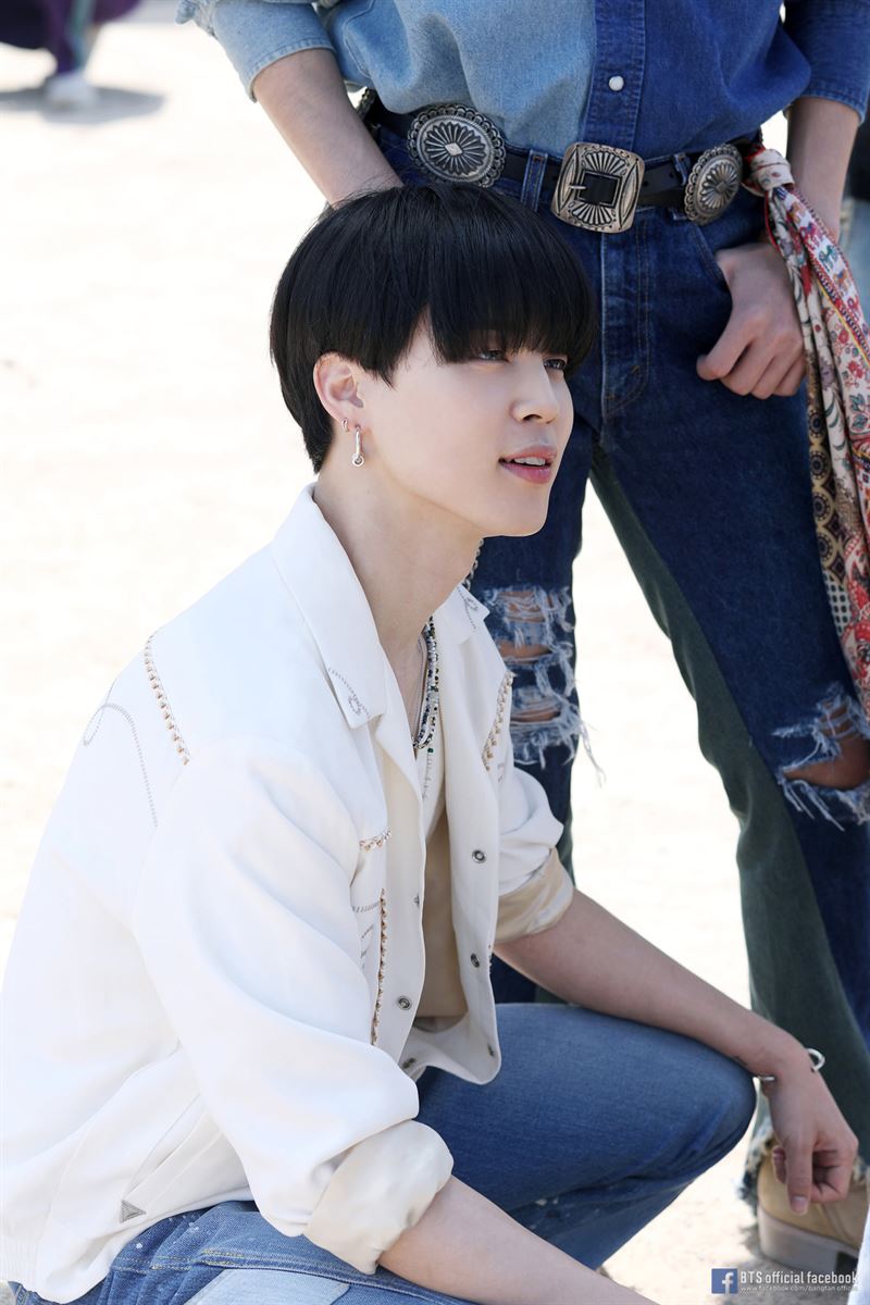 테슬 재킷과 옆트임 부츠컷의 올 블랙 의상을 입은 지민은 고전적 서부 영화 주인공을 연상케 하는 섹시한 카우보이로 변신해 이전과는 또 다른 매력을 보였다. 자연광 아래 잡지를 들고있는 지민의 옆모습은 완벽한 비율을 자랑하며, 짙은 흑발에 우유빛 매끈한 피부는 더욱 돋보였다.