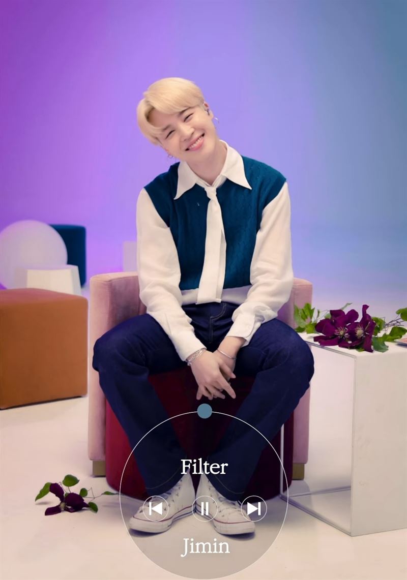 이에 보답하듯 지민의 'Filter'는 방탄소년단 팬클럽 ‘아미’(ARMY)가 탄생한 날인 7월 9일 0시에 아미 팬들에게 들려주고 싶은 ‘아미 플레이리스트’에 해당 곡이 포함됐다. 플레이리스트 마지막을 화려하게 장식한 지민은 금발에 흰셔츠와 초록색 베스트를 입고 청량미 가득한 러블리 모습으로 등장했다.