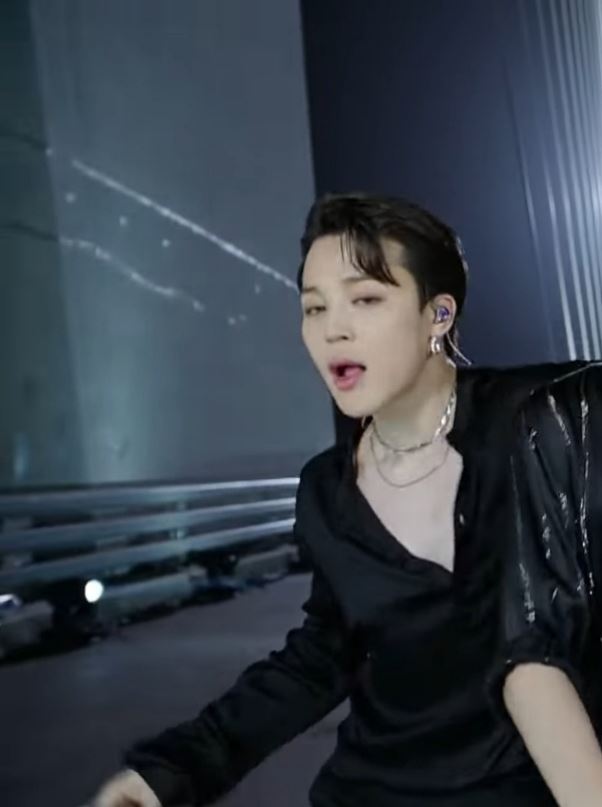 지난 15일 방탄소년단은 미국 인기 TV쇼 '더 투나잇 쇼 스타링 지미 팰런'(The Tonight Show Starring Jimmy Fallon, 이하 '지미 팰런쇼')에 출연해 'Butter' 무대를 선보였다. 지민은 탁 트인 서울 야경과 한강을 배경으로 월드컵대교 위에서 머리부터 발끝까지 올블랙으로 등장했다. 밤풍경에 유독 빛나는 흰 피부를 뽐내며 거부할 수 없는 마성의 뱀파이어 남신 아우라를 발산했다.
