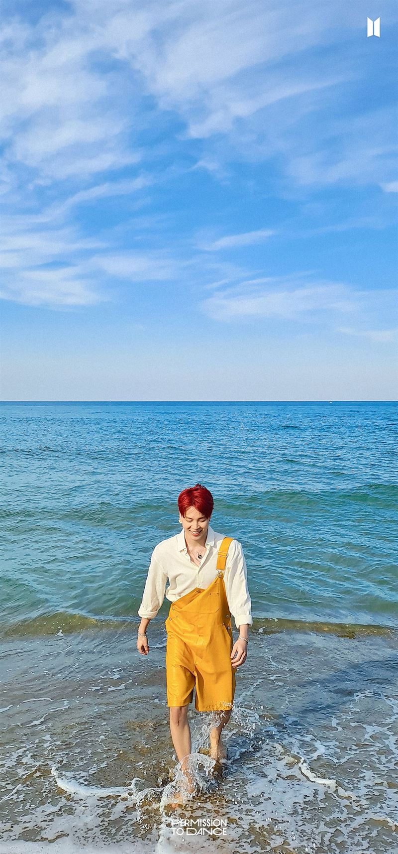 26일 방탄소년단은 공식 네이버 포스트를 통해 'PermissionToDance' 콘셉트 포토를 활용한 휴대폰 배경화면을 공개했다. 지민은 짙은 붉은색 헤어의 실사판 인어왕자 같은 모습으로 화이트 셔츠와 머스타드 색상의 오버롤 팬츠를 입고 수줍은 미소를 보였다. 특히 앙증맞은 꽃 모양 귀걸이를 착용하고 꽃보다 아름다운 비주얼을 뽐낸 지민은 백허그를 유발하는 뒷태로 팬들의 마음을 심쿵하게 했다.