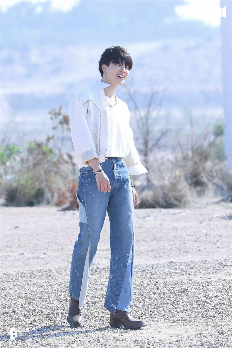 짙은 흑발의 지민은 흰색 운동화와 아이보리 슬랙스, 흰색 라운드 티셔츠에 레드 가디건을 매치해 밝고 경쾌한 곡 분위기에 어울리는 캐주얼룩을 선보였다. 지민은 벽을 바라보고 서 있다 무릎을 굽히며 두 팔을 하늘을 향해 뻗은 채 뛰어오른 뒤 공중에서 순간적으로 몸을 뒤로 젖혀 활처럼 휘게한 뒤 안정된 착지까지의 연결 동작을 물 흐르듯 자연스럽게 펼쳤다. 그의 동작은 한편의 명작을 보듯 눈을 뗄 수 없게 팬들의 시선을 고정시켰다.