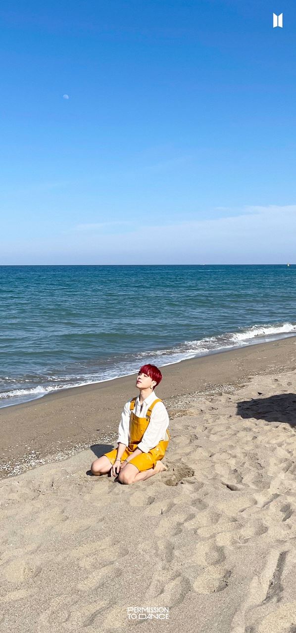 시원한 파도와 푸른 하늘을 배경으로 모래 사장에 ‘W’자세로 앉아 눈을 살포시 감고 미소를 지으며 고개를 들어 햇살을 느끼도 있는 지민은 순수한 미소년의 모습으로 눈부신 청춘 그 자체였다.