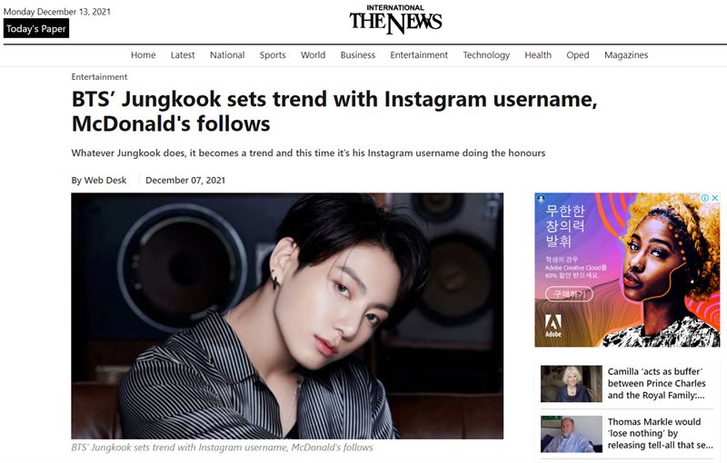 파키스탄 매체 '더 뉴스 인터내셔널'(The News International)도 “방탄소년단 정국이 인스타그램 아이디로 유행을 선도, 맥도날드가 그 뒤를 잇다”라며 “정국이 뭘 하든 대세가 되는데 이번엔 인스타그램 아이디다”라고 아이디 하나로 인기 열풍을 일으킨 현상을 강조했다.