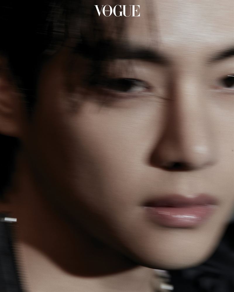 심플한 블랙 티셔츠를 입은 뷔는 어떤 배경도 없이 그저 잘생긴 얼굴과 눈빛만으로 분위기를 압도해 시선을 집중시켰다. 탄탄하면서도 슬림한 팔과 손이 눈길을 끄는 사진에서 뷔는 강인한 남성미가 돋보이는 비주얼과 스타일링만으로 노출 하나 없이 차원이 다른 섹시미를 보여줬다.