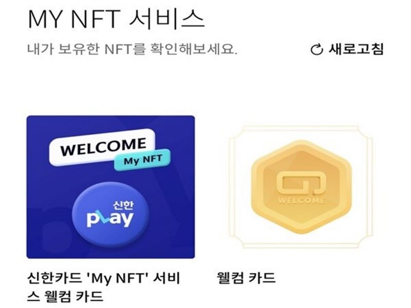 신한카드도 이달 초 고객이 NFT를 발행하고 조회할 수 있는 서비스 ‘My NFT’를 ‘신한플레이(pLay)’ 애플리케이션(앱)에 내놨다.