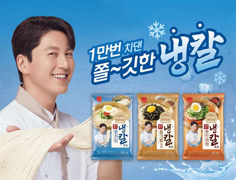이번 신제품은 성명례 식품 명인의 전통 간장과 고소한 들기름 소스를 더한 ‘홍천식 비빔 냉칼국수’, 강순옥 식품 명인의 찹쌀고추장을 사용해 매콤하고 새콤한 맛이 특징인 ‘순창식 명인 비빔 냉칼국수’, 제주산 무 동치미와 사골육수로 시원한 맛이 일품인 ‘제주식 동치미 냉칼국수’ 등 3종이다.