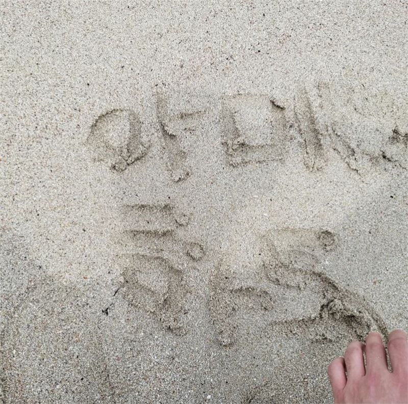 또다른 사진에서는 바닷바람을 느끼듯 눈을 감고 머리를 쓸어넘기는 모습으로 팬들을 설레게 했다. 모래사장에 ‘아미 하트’라고 쓴 사진으로 팬들에 대한 애정을 드러내기도 했다.