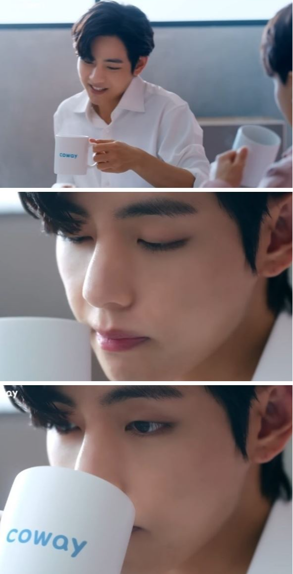 최근 방탄소년단이 홍보활동을 하고 있는 코웨이는 공식 유튜브 채널을 통해 ‘[Coway x BTS] 아이콘 정수기2로 용량도, 온도조절도 더 섬세하게’ 제목의 영상을 공개했다. 광고 콘셉트는 뷔가 집에 찾아온 친구에게 커피를 만들어주는 것으로, 뷔의 커피 향 같은 풍부한 눈빛, 달콤한 목소리, 부드러운 미소는 설렘을 유발했다.