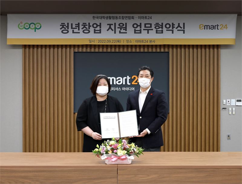 이마트24는 지난 22일 서울 성수동에 위치한 이마트24 본사 3층 대회의실에서 한국대학생활협동조합연합회(이하 대학생협)와 ‘편의점 청년창업 지원을 위한 업무협약(MOU)’을 체결했다고 23일 밝혔다.