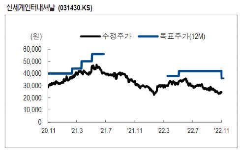 이날 다올투자증권도 신세계인터내셔날에 대해 “내년 소비 둔화 우려로 인한 내수주 전반 투자매력도 하락은 아쉽다”며 업종 멀티플 하락을 반영해 목표주가를 4만8000원에서 3만1000원으로 크게 떨어뜨렸다.