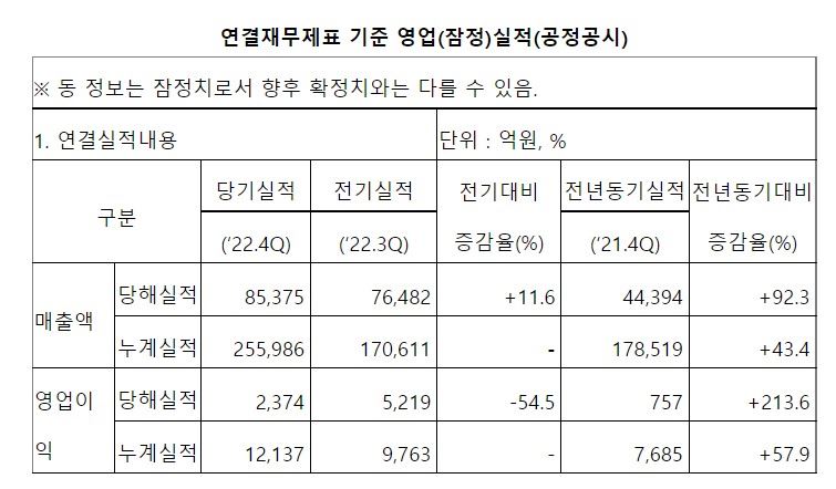 LG에너지솔루션 2022년 4분기 잠정 실적 (자료=LG에너지솔루션)
