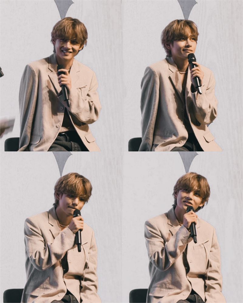 뷔의 광고가 인도네시아 트렌딩 1위를 차지한 것에 대한 소감을 묻는 질문에는 “느낌을 더 잘 살리고 싶어 직접 참여해 같이 만들어 나갔다”며 광고 연출 전반에 참여했다고 밝혀 박수를 받았다. 또 곡작업을 할 때는 투어 당시의 감정을 고스란히 느끼거나 날씨나 계절에서 많은 영감을 받고 있으며 준비 중인 솔로앨범 역시 같은 맥락이라고 덧붙였다.