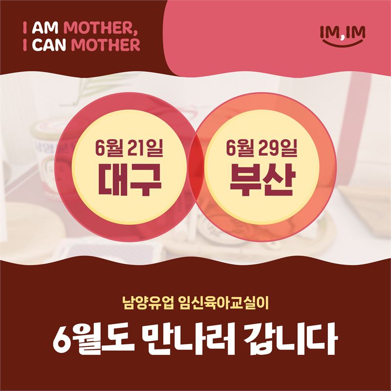 남양유업은 오는 21일과 29일, 대구와 부산 지역 임산부를 대상으로 임신육아교실을 개최한다고 19일 밝혔다.