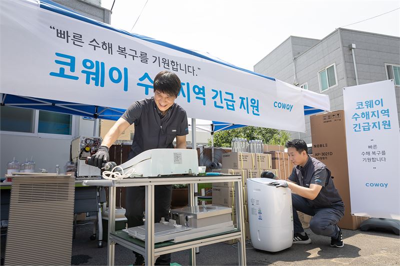 코웨이가 침수 피해 렌탈 고객에 무상 수리 교체 서비스를 지원하고 있다. 사진=코웨이.