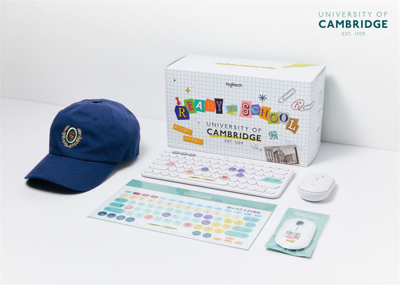 캠브리지, 로지텍의 이번 스페셜 패키지 구성품은 캠브리지의 ‘캠 앰블럼 로고’ 볼캡과 로지텍의 베스트 상품인 ‘K380’ 블루투스 키보드, ‘페블 M350’ 블루투스 마우스로 구성했다. 키보드 자판에 붙일 수 있는 캠브리지 시그니처 디자인 스티커와 로고 마우스캡도 함께 포함되어 있어 내 취향에 맞춰 키보드와 마우스를 꾸밀 수 있게 했다.