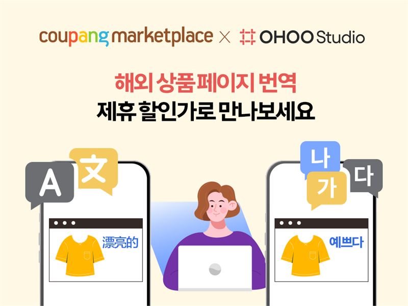 쿠팡 마켓플레이스가 ‘오후랩스(오후스튜디오)’와 손잡고 해외직구 판매자를 지원한다. 쿠팡은 AI 이미지 번역서비스 오후스튜디오와 제휴해 ‘마켓플레이스’ 판매자를 대상으로 상품페이지 번역서비스를 할인해주는 프로모션을 진행한다. 쿠팡 마켓플레이스는 외국어로 된 상세페이지 이미지를 번역하는데 어려움을 겪는 영세 판매자들을 위해 제휴를 진행했다. 해외 상품을 소싱해 쿠팡에 등록하고자 하는 판매자들은 이번 제휴를 통해 보다 합리적인 비용으로 상품 페이지 번역 서비스를 이용할 수 있다.