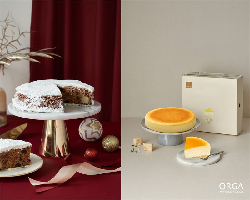(왼쪽부터) ‘우리밀 슈톨렌 케이크’, ‘우리쌀 치즈케이크'. 사진=풀무원
