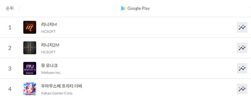 카카오게임즈 '우마무스메 프리티 더비'가 19일 구글플레이스토어 실시간 매출 순위 4위에 올랐다. (자료=모바일인덱스)