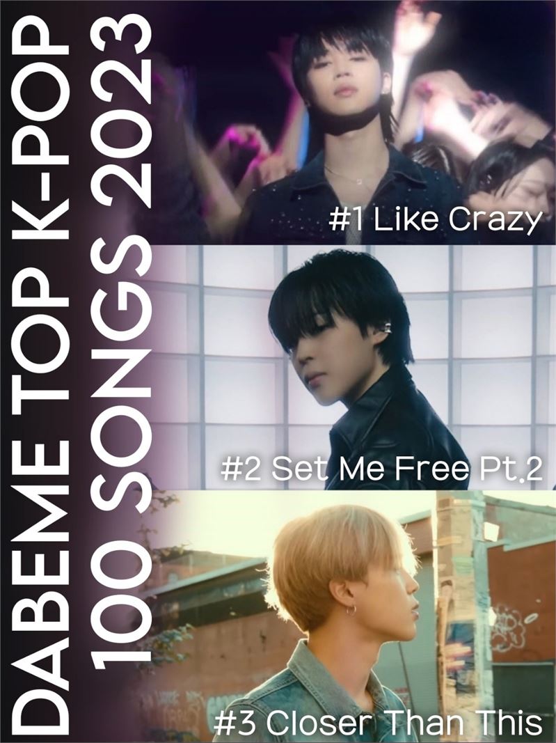 최근 글로벌 팬 투표 사이트 '다베메 팝(Dabeme Pop)'이 '2023 K팝 송즈'(K-POP SONGS 2023) 투표를 진행했다. 그중 '라이크 크레이지'(Like Crazy)가 1위를 차지, '셋 미 프리 파트2'(Set Me Free Pt.2)와 '클로저 댄 디스'(Closer Than This)가 2, 3위에 올라 지민의 솔로곡이 톱3를 장식했다.