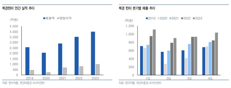 하 애널리스트는 "호흡기계 의약품 매출 비중이 높은 북경 한미는 1분기가 대표적인 성수기며, 중국 내 독감 유행 등으로 이탄징(소아 진해거담제), 이안핑(성인 진해거담제) 등에 대한 높은 수요가 발생 하면서, 매출액 1232억원으로 분기 최대 매출을 갱신할 것"이라고 분석했다.