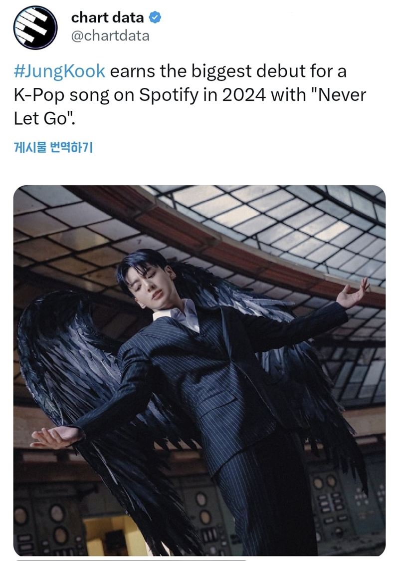 방탄소년단 정국의 자작곡 'Never Let Go'(네버 렛 고)가 올해 K-팝 곡 가운데 가장 큰 데뷔 기록을 수립했다.