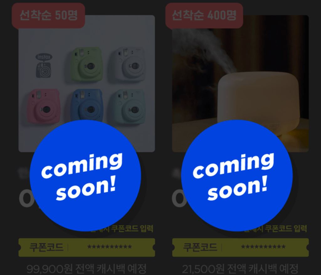현재 오전 10시 이벤트는 종료된 상태다. 하지만 오후 4시 타임의 기회가 있다. 선착순 50명에 한해 9만9900원의 폴라로이드 카메라와 선착순 400명에 한해 2만1500원의 가습기를 0원 특가로 제공한다.