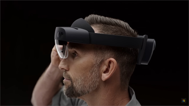 MS의 증강현실 헤드셋 '홀로렌즈2'. (사진=마이크로소프트 유튜브 갈무리)