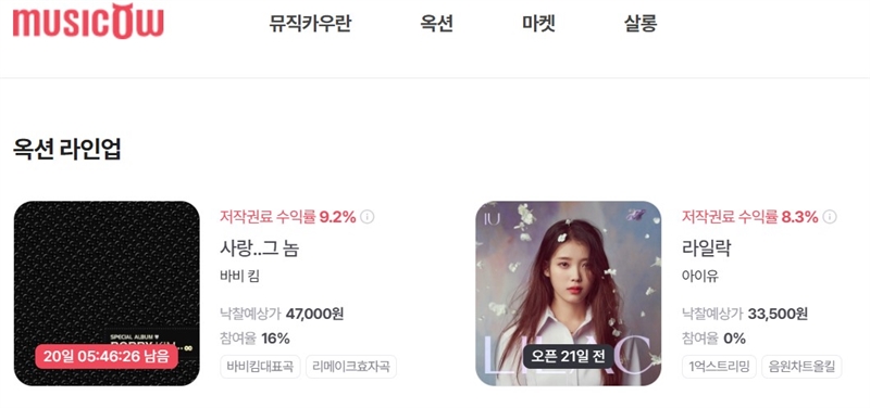 다음달 11일에는 가수 아이유의 '라일락'의 옥션도 예정돼 있다. '라일락'은 아이유의 20대 마지막 앨범 타이틀곡으로, 11월 기준 뮤직비디오 조회수가 1억1000만뷰에 이르는 등 높은 저작권 수익을 올릴 수 있을 것으로 업계는 기대하고 있다.