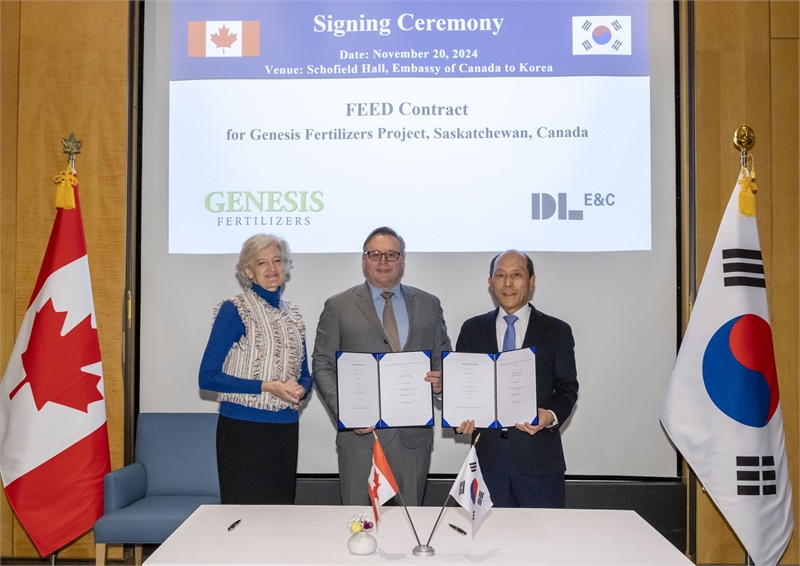 DL은 전날 주한 캐나다 대사관에서 캐나다의 비료 업체 제네시스 퍼틸라이저스(Genesis Fertilizers)와 비료 공장 프로젝트에서 설계와 기술 라이선싱 업무를 수행하는 계약을 체결했다고 21일 밝혔다.