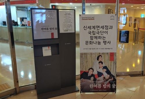 지난 5일 국립극단과 신세계면세점은 문화소외계층 330여 명을 연극 ‘한여름 밤의 꿈’에 초청했다. 이번 문화나눔은 2017년부터 이어진 신세계면세점의 후원으로 성사되었다.