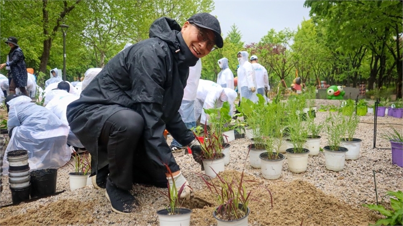 행사에는 송호섭 다이닝브랜즈그룹 대표를 비롯해 본사 각 부서에서 자발적으로 참여한 임직원 50여명이 함께했으며, 가드너와 함께 꽃가루 매개자(벌, 나비 등)와 작은 새들을 위한 식물을 직접 심으며 생태계 보전 중요성을 되새겼다. 참가자들은 ‘비밀(Bee-meal)-꽃가루 매개 식물 심기’ 프로그램을 통해 꽃과 식물에 대한 이해를 높이며 도심 공원의 종다양성 확보를 위한 실질적인 활동을 펼쳤다.