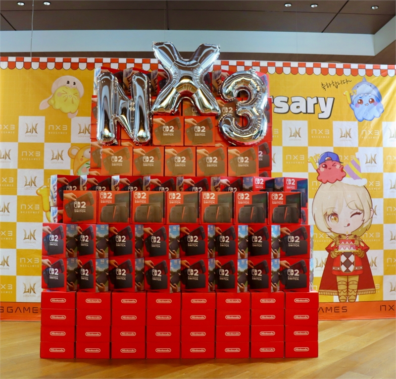 엔엑스쓰리게임즈는 자사가 개발한 '로드나인' 서비스 1주년을 맞아, 전 임직원에게 '닌텐도 스위치2'를 선물하는 사내 이벤트를 진행했다고 14일 밝혔다.
