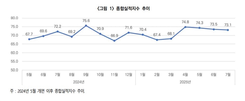 건설경기실사 종합실적지수 추이. (자료=주택산업연구원)
