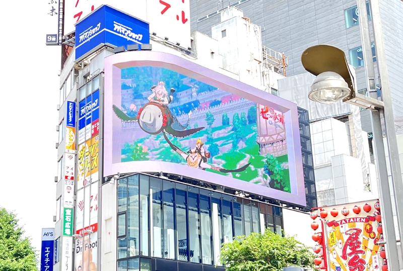 해당 광고 영상은 가로·세로 약 18.9×8.1m(신주쿠), 20.3×2.8m(시부야) 규모를 자랑한다. 영상에는 원작의 주인공 멜리오다스와 트리스탄이 탈 것을 타고 하늘을 나는 장면이 등장하며, 아나모픽(Anamorphic) 기법을 활용해 전광판에서 실제로 튀어나오는 듯한 입체감과 생동감을 구현했다. 특히 캐릭터가 관람자와 눈을 맞추는 듯한 연출이 몰입감을 극대화해 시선을 사로잡는다.