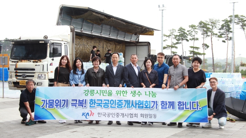 한국공인중개사협회가 극심한 가뭄으로 어려움을 겪고 있는 강릉 지역에 긴급 구호 물품을 지원했다. 협회는 8일 회원들의 자발적 참여로 마련한 생수 1만1000병을 강릉시민과 회원들에게 전달했다고 밝혔다.