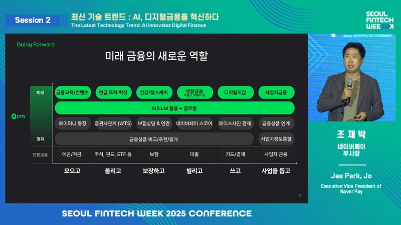 조재박 네이버페이 부사장은 지난 29일 여의도 콘래드 서울에서 열린 '서울 핀테크위크 2025' 세션2에서 '핀테크와 금융혁신'를 주제로 한 세션 발표에 나서 이 같이 말했다.