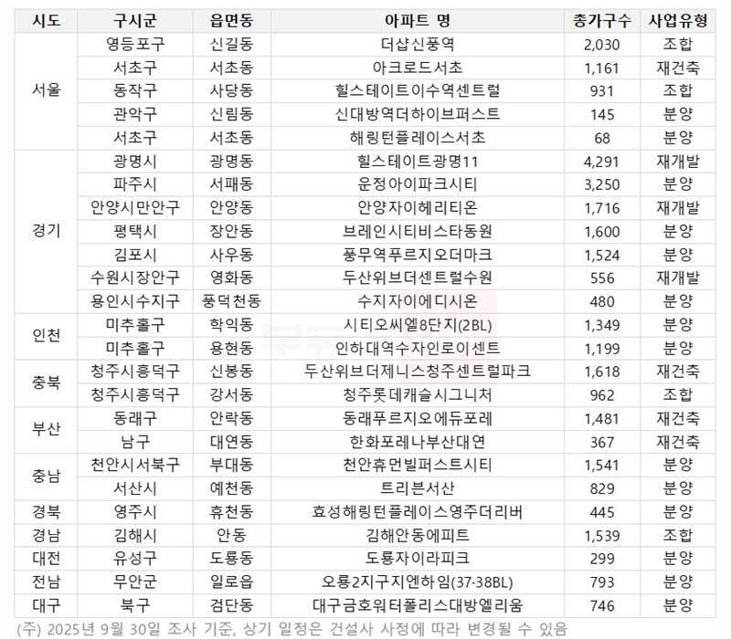 10월 분양 리스트 (자료=부동산R114랩스)