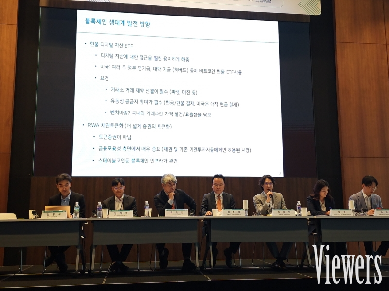 최재원 서울대학교 경제학과 교수는 한국은행의 CBDC(디지털화폐) 테스트인 '프로젝트 한강' 추진 당시 관련 인재 수급에 어려움을 겪었던 경험을 고백하며 "국내 블록체인 인프라의 부재로 자본뿐만 아니라 관련 인력들도 해외로 유출되고 있다"고 경고했다. 이를 해소하기 위해 "가상자산 법인 투자를 허용해 유동성 공급을 확대하고, 실물자산 토큰화로 금융 포용성을 확장해야 한다"고 강조했다.