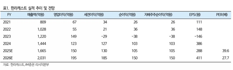 iM증권은 20일 한라캐스트에 대해 보고서를 내고 "향후 휴머노이드 시장 개화시 수주증가가 가속화되면서 수혜를 입을 것"이라고 소개했다. 최근 경량화가 중요한 자율주행, 커넥티드 디스플레이, 로봇 분야 등의 선도기업 등을 고객사로 확보하면서 신규수주가 늘고 성장성을 높여가고 있다는 분석이다.